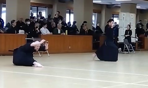 *One of my 後輩 (kōhai: junior(s)) is entering a tournament this year. Last week I just had him attack me full power to try to keep his stamina going. I just blocked and dodged his strikes but occasionally planted a controlled strike on him if he was leaving himself too open. This is how seniors should be able to handle junior grades in my opinion.