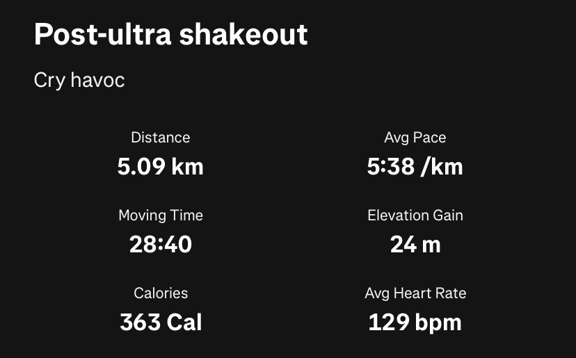 Little by little the jobs I’ve needed to do are getting done. I went from thinking to myself that I don’t have time to get an article done today to suddenly having the beginnings of an article done and I’m now ready to go for a short run. I’m still pretty sore from that ultramarathon but I’m determined to get things going again.