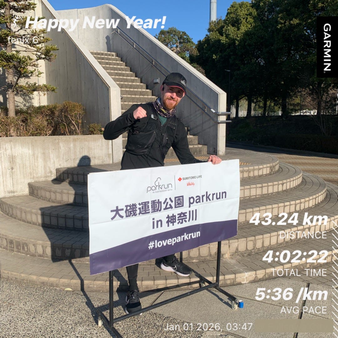 December was a successful month to cap off a successful year. In 2025 I got a new PB in my marathon time (Shizuoka Marathon 2025), ran my first 100 mile run (Yagurazawa Okan), completed one of the toughest 100 km ultras in Japan (Nobeyama Ultramarathon), and smashed my original distance target by running 3,767.8 km. It’s going to be tough to follow this year.