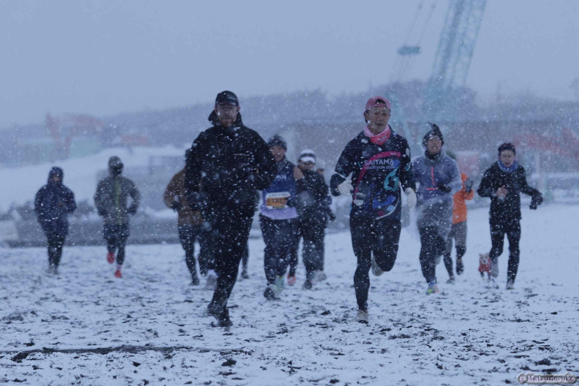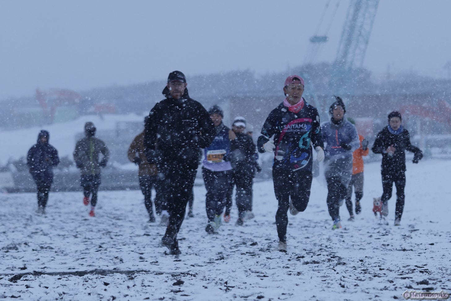 For beach running we had some pretty extreme difference in temperature. At the beginning of the month a snowstorm blew in and gave us some very interesting conditions to run in (cancelling the Saitama Marathon in the process).
