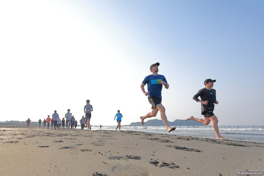 Beach running has been getting nicer and nicer. The weather conditions are great recently so running barefoot is very comfortable again.