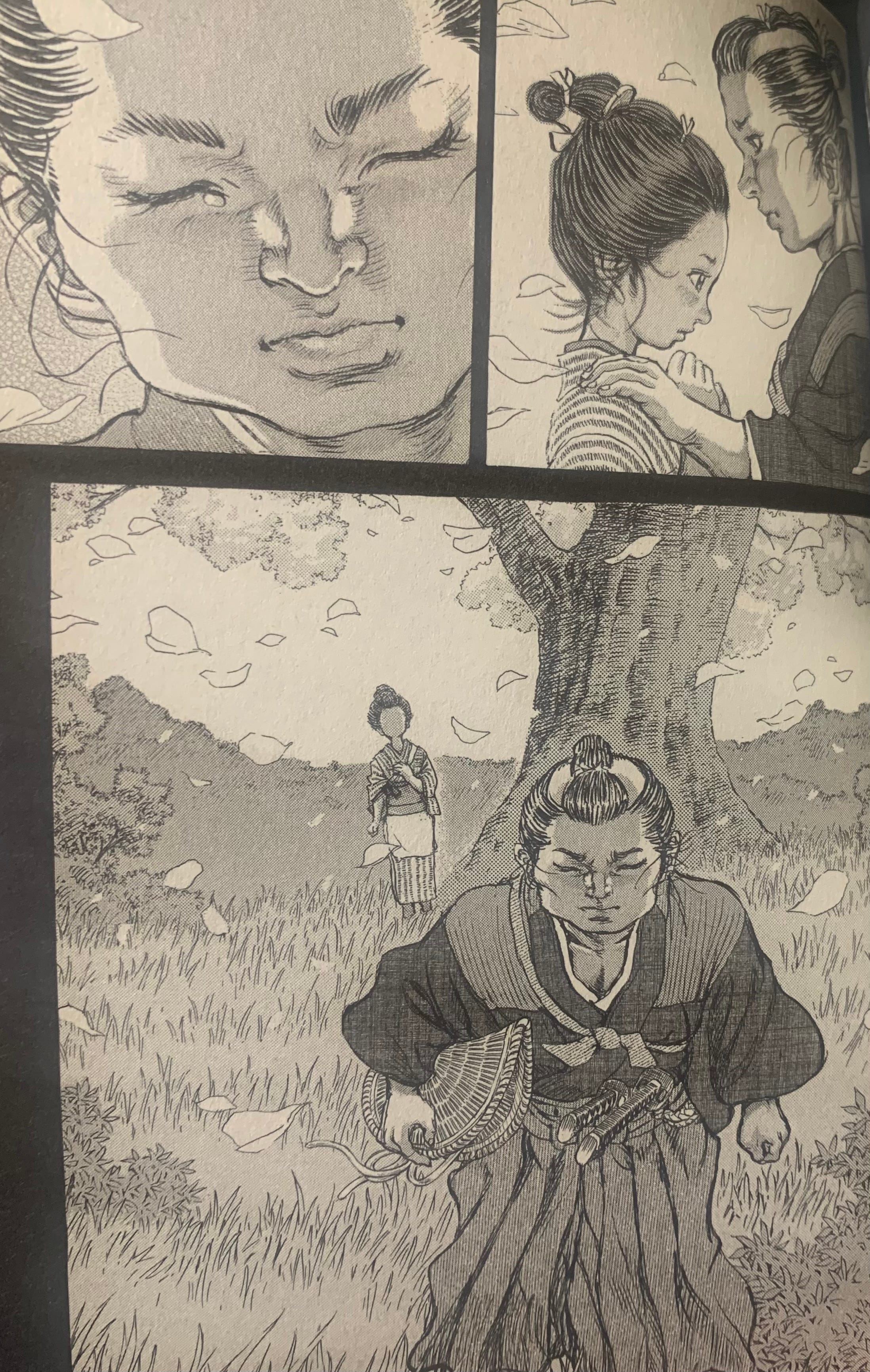 In Shigurui, Ushimata gave up everything to become the best swordsman he could be. Those who have read the whole manga will know that there is no happy end…for anyone. It’s all just “obsessed madness.” And while I can admire the determination of someone who makes sacrifices to become the best, Ushimata took this too literally and took it way too far. It could be argued that he was driven mad by standing in a forest alone for years smashing trees down with a wooden sword, but he also could have walked away at any point. Everything was his own decision whether he realized it or not. (Whether that makes him more or less sympathetic is up for interpretation).
